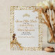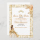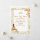 Esta placa Save the Date Quinceañera apresenta um design elegante e romântico com uma borda de filigrana de ouro, sotaques florais de pêssego mole e creme, e um delicado detalhe de borboleta. A paleta colorida de branco, ouro e pincel cria uma sensação de sonho e feminino. Uma ilustração graciosa de uma jovem em um vestido de bola floral aparece no fundo, melhorando o tema do conto de fadas. A tipografia elegante numa mistura de fontes cursivas e serif adiciona sofisticação, enquanto um gráfico de ouro tiara no topo reforça o tom real e celebratório do evento.