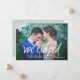 Este anúncio de casamento elegante e simples "nós fugimos" mostra sua foto de sangria de cheio, com uma camada de caligrafia branca moderna e esquisita.