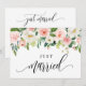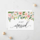 Recem casados! Anuncie sua casamento à família e amigos com este cartão de casamento floral. Apresenta a terra floral de aquarelas de peões brancos e escamosos e rosas com acentos verdes. Personalize adicionando seus detalhes. Este cartão de anúncio de recem casados floral é perfeito para qualquer época de casamento e tema.