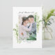 Recem casados! Anuncie o seu casamento à família e amigos com este cartão de recem casados fotográfico personalizável. Ele apresenta um roteiro cômico e um quadro verde de aquarela. Este recem casados verde é perfeito para casamentos de primavera e verão. Personalize adicionando nomes, fotos e outros detalhes.