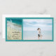 Anuncie seu novo status depois de sua recente cerimônia de casamento ou elopeio secreto com o Cartão com fotos de Casamento de Recem casados de Casamento de Praia Tropical. Este cartões de fotos personalizado de recem casados de praia apresenta uma fotografia cênica da turquesa ou do oceano azul-aqua na praia da areia branca com uma palmeira e um design de espiral teal adornando o canto. Perfeito para depois de um temático casual, mas clássico, costado natural ou destino de ilha nos trópicos.