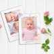 Elegante Cartões de agradecimentos moderno minimalista de colagem de fotos com anúncio de nascimento com Na moda, Apresentando cartão, bem-vindo, menina de cartas de boas-vindas, bebê com flores de aquarela adoráveis em cor rosa de lilás, quadro botânico. Personalize este belo cartão com suas fotos de recém-nascidos e estatísticas de natalidade. Por favor, substitua as fotos de exemplo por suas. Exemplo de fotos cortesia de https://pixabay.com/es/users/amyelizabethquinn-52073/