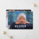 O Anúncio de Nascimento do Recém-Nascido do Bebê-Bebê Colagem de Fotos Moderna é um design novo e fresco que é totalmente personalizável. Você pode mudar todas as fotos e todo o texto do menu à direita. A frente tem uma foto de herói e os nomes dos bebês. A parte de trás tem uma colagem de 4 fotos e o estado de nascimento está em um retângulo azul transparente e semitransparente que é uma camada da colagem de fotos. Você pode adicionar o monograma e o primeiro nome/apelido do bebê nas costas. Este cartão de nascimento será a melhor maneira de mostrar como é maravilhosa a nova adição à sua família