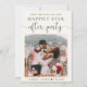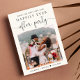Chic Light me salve o anúncio de data para uma recepção para celebrar seu elopemento ou casamento particular que mostra sua foto do dia do casamento e "Salve a data para nossa festa feliz" em uma mistura de tipografia moderna e um roteiro de na moda. Em sua foto, adicione seus nomes e data de recepção. No lado oposto, personalize seu anúncio de casamento e salve os detalhes da data e adicione seus nomes em um roteiro semelhante a assinatura.
