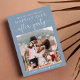 Chic empoeirado azul salve o anúncio da data para uma recepção para celebrar seu elopeamento ou casamento particular. A frente apresenta sua foto e "Save The Date For Our Felily Ever After Party" em uma mistura de simples tipografia branca e um roteiro branco de na moda com baloiços. Em sua foto, adicione seus nomes e data de recepção. No lado oposto, personalize seu anúncio de casamento e salve os detalhes da data e adicione seus nomes em um roteiro semelhante a assinatura.