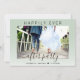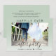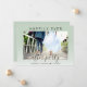 Convite de casamento ou elopamento elegante verde sage ou convite de recepção de casamento ou festa de celebração. A frente apresenta sua foto, "Festa Feliz para Sempre" em tipografia simples e um roteiro moderno com floreios, e seus primeiros nomes e data de casamento. No verso, você pode personalizar seu anúncio de casamento e convite com mais detalhes e adicionar seus nomes em um roteiro semelhante a uma assinatura.