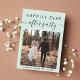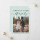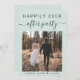 Moderno elopemento verde de menta clara ou anúncio privado de casamento e convite de recepção que mostra sua foto de casamento e "Feliz Sempre Depois da Festa" em uma mistura de simples tipografia e um roteiro de chic com pestanas. Adicione seus primeiros nomes e a data do casamento. No verso, personalize seu anúncio de casamento e seu convite de recepção, insira seu endereço no site do casamento para criar um código QR para os convidados digitalizarem suas fotos de casamento, todos os detalhes e para RSVP on-line, e adicione seus nomes em um roteiro semelhante a assinatura.