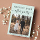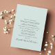 Moderno elopeio verde de menta leve ou anúncio privado de casamento com convite para recepção. A frente apresenta sua foto e "Feliz Festa Depois" em uma simples tipografia e um roteiro chic com pinceladas. Adicione seus primeiros nomes e a data do casamento. No verso, personalize sua mensagem e os detalhes do convite da festa ou recepção e adicione seus nomes em um script semelhante a assinatura.