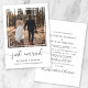 Anúncio de casamento simples e elegante ou de fuga, ou convite para recepção ou festa após o casamento. A frente apresenta sua fotografia em uma moldura quadrada recortada, "casados" escrito em uma fonte moderna com floreios e seus primeiros nomes, data e local do casamento em tipografia moderna. No verso, você pode personalizar o anúncio do casamento com mais detalhes, adicionar um convite para recepção ou festa e assinar seus sobrenomes de casados em uma fonte que imita uma assinatura.