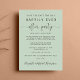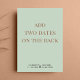 O moderno sábio verde salva o anúncio de data para uma recepção ou festa para celebrar seu elogio ou casamento particular. "Salve a data para nossa festa feliz sempre depois" é escrito em uma simples tipografia e uma escrita elegante com balanços. Personalize seu anúncio de casamento e adicione a recepção salve os detalhes da data e seus nomes em um roteiro semelhante a assinatura. No lado oposto, adicione seus primeiros nomes e datas de casamento e recepção.