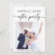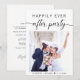 Anúncio de casamento ou elopamento moderno e convite de recepção. A frente apresenta sua foto, "Festa Felizes para Sempre" em tipografia simples e um roteiro moderno com floreios e seus nomes e data de casamento. No verso, personalize seu anúncio e convite e adicione seus nomes em um roteiro semelhante a uma assinatura.
