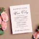 Elegante e rosa claro chic ou pequeno anúncio de casamento e recepção de casamento ou convite de festas de celebração. A frente apresenta "Felizmente Sempre Depois da Festa" em uma mistura de simples tipografia e um roteiro moderno, e você pode personalizar sua mensagem e convite e adicionar seus nomes em um roteiro semelhante a assinatura. O reverso mostra sua foto favorita do casamento, seus nomes e data do casamento.