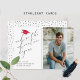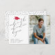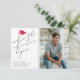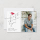 O design apresenta uma fotografia de formando personalizada com um chapéu de graduação vermelho de brilho. A citação da aventura é escrita em script escrito à tipografia.