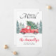 Cartão comovente com o tema russo do inverno, com um simples fundo branco, árvores de mola aquática, um caminhão vermelho-safra, uma árvore de xmas e um novo modelo de morada que é fácil de personalizar.
