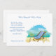Compartilhe suas notícias de aposentadoria ou seu novo endereço com este anúncio tropical. Apresenta uma cadeira de sol, águas tropicais e uma palmeira.