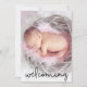 Compartilhe a alegria de acolher sua linda menina no mundo com este anúncio de nascimento de uma foto moderna e assombrosa. Personalize esta modelo sem esforço com uma foto carinhosa da sua pequena na frente, capturando sua inocência e charme. Nas costas, você tem a oportunidade de transmitir a alegre notícia de sua chegada, incluindo todos os detalhes essenciais como seu nome, data de nascimento, peso e comprimento. Adicione um toque pessoal, incluindo uma mensagem sincera para expressar sua gratidão pelo amor e apoio recebidos durante este período especial. O design exude elegância com sua bela fonte desenhada à mão, que graciosamente exibe a palavra "Bem vindo". A combinação de tipografia delicada e o calor da foto do seu bebê cria um anúncio verdadeiramente cativante que deixará uma impressão duradoura nos seus entes queridos. Este anúncio serve tanto como um tesouro e como um gesto sincero de compartilhar o entusiasmo desta jornada notável com a família e os amigos. Quer esteja anunciando o nascimento do seu primeiro filho ou adicionando um novo pacote de alegria à sua família em crescimento, este anúncio de nascimento personalizado é uma forma perfeita de celebrar e criar memórias duradouras. Aprecie os seus entes queridos com esta lembrança atenciosa e bonita, permitindo-lhes partilhar a alegria da chegada da sua bebê precioso.