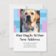Este lindo cão de estimação do Ouro moderno Retriever, com padrão azul no fundo branco de trás e no texto da cinza, é uma imagem única que deve estar neste cartão de anúncio móvel. Você pode personalizar isso adicionando seu próprio cachorro de estimação ou foto de gato e adicionar seu novo endereço. Se não conseguir ver o que prefere, envie-me um e-mail para jraym48@gmail.com e terei todo o prazer em criar um novo design que ama. Copyright ©Jude Maceren artista.