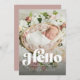Um "olá" ousado, ao estilo retrô, em branco contra uma foto vertical solteiro, faz um jeito doce e na moda para apresentar seu novo bebê. Com espaço para nome e estatísticas na frente com a foto, o verso deste anúncio de nascimento é um doce rosa poeirento e empoeirado. Perfeito para pais novos legal introduzirem sua nova garotinha com um pouco de talento vintage moderno! O verso também inclui espaço para uma segunda foto. Este design também está disponível como um download digital de anúncio de nascimento.