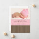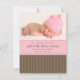 O anúncio de nascimento cor-de-rosa e marrom apresenta faixas verticais castanhas ao longo do fundo e uma faixa rosa onde os detalhes de nascimento do seu bebê se sentam.