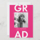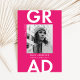Anuncie sua formatura em estilo com nossos modernos anúncios de graduação de fotos! Os anúncios de graduação da tendência mostram sua foto de formando com "Formando" em letras brancas em negrito contra um fundo rosa-quente sólido. Personalize a frente dos anúncios de graduação rosa-quente adicionando o nome do formando, o nome da escola e o ano de graduação. O anúncio é revertido para exibir um padrão geométrico rosa-quente com fundo branco.