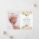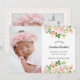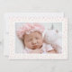 Cartão de modelo de anúncio de nascimento bonito e elegante com ilustrações florais de rosas rosa-claro, lavanda e folhagem verde na frente. O verso revela um fundo de bolinhas rosa. Há duas fotos do seu recém-nascido que podem ser adicionadas a esta placa (frente e verso). Cartão perfeito para anunciar a chegada do seu novo bebê com as estatísticas de nascimento. Excelente para o bebê e para a menina.