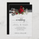 Um design clássico e vintage com rosas vermelhas profundas requintadas, detalhes em dourado e respiro de bebê sobre uma fita preta e branca e fundo texturizado. Texto de caligrafia manuscrito elegante misturado com uma fonte moderna. Se precisar de ajuda, por favor me envie um email para shutterbug600@yahoo.com.