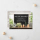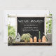 Anuncie seu novo endereço residencial a amigos, familiares e associados com esta charmosa carta de apresentação rápida. Ele apresenta um quadro com texto personalizado que você pode personalizar com seu novo endereço residencial. O quadro-negro se senta sobre uma prateleira com plantas domésticas, uma casinha de pássaros e potes de argila, além de uma lata de água das plantas. O olhar é estilo rústico de fazenda com um tema de jardinagem. Há também um modelo de texto na parte traseira da placa para personalização com a mensagem desejada.