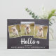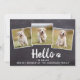 Olá... sou o Puppy, membro mais novo da família! Apresente o seu novo filhote com este simples quadro rústico de tabuleiro, novo cartão de anúncio para cães novos e cachorros. Adicione as fotos favoritas do seu filhote e personalize com o nome dos filhotes e o nome da família! Quer seja um novo filhote ou um cão de salvamento adotado, este novo design de anúncio de animais de estimação é perfeito para enviar a família e amigos para receber um novo animal de estimação da família. COPYRIGHT © 2020 Judy Burrows, Black Dog Art - Todos Os Direitos Reservados. Rustic Hello Photo Collage Puppy Dog Novo Anúncio de Pet