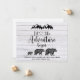 A família russa de ursos andantes deixou a aventura começar o anúncio da gravidez, em um fundo de madeira. Caligrafia com coração.