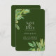 Azeitonas e ramos de cor aquosa russa, Salve o Cartão de Data. Os planos de fundo, mostrados na cor verde da floresta, podem ser personalizados.