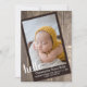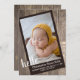 Compartilhe suas boas notícias com esta apresentação de na moda para familiares e amigos com um tema de fotos de madeira rústica. Adicione as suas fotos de recém-nascido a este modelo e personalize com os seus detalhes! Este belo anúncio de nascimento de madeira em celeiro apresenta uma foto de retrato de cheio com um título de "saudação" em texto ousado que pode ser personalizado para dizer o que você quiser (tente "bem-vindo" ou "encontrar")! O nome do bebê e as estatísticas de nascimento podem ser personalizados sob a fotografia. No verso, há um espaço bônus para fotos e assinaturas para personalizar!