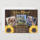 Atualize os amigos e a família com as suas novas informações de endereço num estilo único com este design floral de girassol de cor-de-água num amarelo ensolarado num fundo de madeira rústico e escura. Basta adicionar suas três fotos e personalizar conforme desejar. Design composto por Hoilday Hearts Design (direitos reservados). Parabéns na sua nova casa!