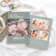 Este simples cartão de nascimento de colagem fotográfica moderno é perfeito para compartilhar as boas notícias da chegada do seu bebê. Ele apresenta uma foto de solteiro no lado frontal com um roteiro cardíaco moderno com a palavra "apresentando" sobre um fundo verde empoeirado. As costas apresentam uma colagem de três fotos. Adicione o nome do seu bebê e as estatísticas de nascimento para personalizar o cartão.
