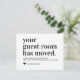 Sua Sala de Convidados Mudou O Anúncio Móvel, com um roteiro moderno e tipografia de fontes e um coração. As cores podem ser alteradas facilmente clicando em personalizar e, em seguida, clique para personalizar ainda mais para ver o nosso selecionador de cores. Entre em contato com nosso compro se precisar de ajuda.