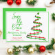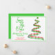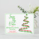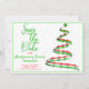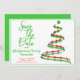 O lado direito desta design de anúncio da festa de Natal "Salvar a Data" apresenta uma árvore de Natal verde e vermelha moderna com. O lado esquerdo da placa contém as informações de modelo. A borda frontal e a parte traseira da placa correspondem às cores. Personalize as informações de modelo, remova o texto e/ou clique em personalizar para selecionar uma cor de tipo, tamanho e estilo preferidos.