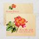 Lindo cartão postal de casamento com pintura em aquarela de rosa de arte fina dupla face para salvar a data. Simples e clássico convite de aviso prévio de casamento romântico em tons quentes de vermelho, rosa, laranja e creme. Design clássico de casamento parte do conjunto de papelaria de casamento tea rose art. Edite este cartão postal com seus nomes, datas e texto. Perfeito para um casamento de jardim ou tradicional. Pintado exclusivamente em aquarela por Sarah Trett.