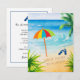 Nossa mudança de endereço em uma placa plana mostra ondas do oceano rolando em uma praia enquadrada por palmeiras e arbustos tropicais. Um guarda-chuva de praia e flip-flops azuis dizem aos seus destinatários que vocês se mudaram para o sul... mesmo que eles não vissem as palavras riscadas na areia: "Nós nos mudamos para a Flórida." Se sua nova casa estiver em um local diferente que também tem praias e palmeiras, não se preocupe... o texto em frente e atrás deste novo anúncio de endereço pode ser facilmente revisado no modelo de Personalização. Esta design de cenário de praia de anúncios móveis inclui um cartão postal, dois tamanhos de cartões planos com envelope... e uma etiqueta de endereço de retorno.