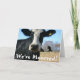 O cartão engraçado tem uma foto de uma vaca negra e branca com olhos loucos com fundo azul e as palavras em branco "Nós nos Movemos!". O dentro diz em letras negras, "Santa Vaca! Nós nos movemos" Você pode personalizá-lo com as palavras que quiser.