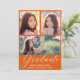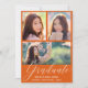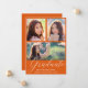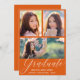 Envie à sua família e amigos um cartão de anúncio personalizado exclusivo para a graduação da colagem de fotos para os animar. Este simples design de modelo apresenta três fotos para você mudar para seu próprio enquadramento em laranja. Abaixo de suas fotos está a palavra "Formando" na tipografia moderna do guião manuscrito branco e seu nome com sua escola e ano para personalizar. A parte de trás do cartão é laranja. Desenhada por Susan Coffey.