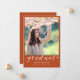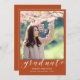 Envie a sua família e amigos um anúncio exclusivo personalizado sobre a graduação de fotos para usá-los. Este modelo moderno apresenta a sua fotografia em laranja e abaixo em branco é a palavra "Formando" com o seu nome, escola e ano para personalizar. O verso do cartão tem uma imagem de um boné de formando preto com diploma e "Classe de 20XX" em uma simples tipografia negra. Desenhado pela artista ©Susan Coffey.