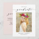Anuncie sua formatura para familiares e amigos com este cartão de formatura personalizável. Ele apresenta caligrafia caprichosa preta e tipografia clássica. Personalize este simples cartão de anúncio de formatura adicionando sua foto, nome e nome da escola. Este cartão de anúncio de formatura com foto e letra é perfeito para formaturas do ensino médio ou faculdade.
