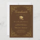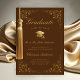 Anuncie a formatura de sua filha do segundo grau ou da faculdade para a família e amigos com este elegante cartão de anúncio formal tradicional. Este design de chic apresenta boné de formando dourada falsa e script em um fundo marrom enquadrado com uma borda de folhas botânicas de filigre de falso ouro. O texto clássico da caligrafia, estilizado, diz "Classe de Formando de 20XX" com nomes de pais, formando, escola, honras e ano para personalizar Designed pela Susan Coffey.