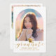 Envie a sua família e amigos um anúncio personalizado exclusivo de graduação de fotos, apresentando sua foto com uma moderna borda oval em branco. Abaixo, em faux gold script, está a palavra "Formando" com seu nome, escola e ano para personalizar acentuado por um boné de formatura de ouro. A parte traseira da placa tem uma foto de segundo com detalhes de graduação. Desenhada por Susan Coffey.