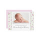Esta design apresenta anúncios de bebês cor-de-rosa, com um lindo padrão floral caprichoso com um estilo verde botânico moderno, com posicionamento fotográfico, e uma elegante menina esboroada com flores, um mínimo simples, com uma simples tipografia familiar recém-nascida, um verde arborícola branco e um design natural de borboletas, é uma menina nova mãe