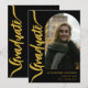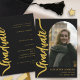 Comemore e anote a graduação da faculdade, universidade ou segundo grau da sua filha com este cartão de graduação de na moda e formando preto. Apresentando uma elegante caligrafia em dourado e um modelo de foto de formando em dourado, este design capta o entusiasmo de novos começos e comemorações alegres. Personalize-o com uma foto apreciada do seu formando usando o modelo de foto fácil de usar e realce os detalhes do evento na impressionante tipografia. Desenhado pela artista Catherine Sweetman, este convite único combina elegantemente elegância com a emoção da conquista da sua filha, fazer a maneira ideal de juntar entes queridos e marcar este marco especial.