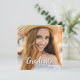 Um único cartão de anúncio personalizado de graduação em quadrado de fotos, com design elementos elegantes de script de pincel com texto moderno. A foto dos formandos destaca a frente do cartão, enquanto a parte traseira do cartão oferece espaços de texto personalizados para informações sobre a formatura e a viagem futura. Você pode personalizar facilmente as cores principal e de texto na parte traseira da placa para atender às suas necessidades. Para ver mais itens como este, visite minha loja aqui em "www.Zazzle.com/LakeViewCardCo". Obrigados