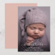 Anúncio de nascimento de foto de bebê adormecido adorável com sobreposição de nome em script, para menina ou menino. Basta usar este modelo para adicionar a foto personalizada do seu próprio bebê doce e personalizar com o nome do bebê na tipografia de script elegante e trendy. Foto em lilás pálido suave com uma cor sólida de blush mauve suave no verso do convite.