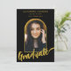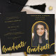 Comemore a faculdade, universidade ou segundo grau da sua filha com este cartão de graduação de na moda e formando preto. Apresentando uma elegante caligrafia em dourado e um modelo de foto de formando em dourado, este design capta o entusiasmo de novos começos e comemorações alegres. Personalize-o com uma foto apreciada do seu formando usando o modelo de foto fácil de usar e realce os detalhes do evento na impressionante tipografia. Desenhado pela artista Catherine Sweetman, este convite único combina elegantemente elegância com a emoção da conquista da sua filha, fazer a maneira ideal de juntar entes queridos e marcar este marco especial.