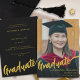 Anúncio Script Dourado de Foto do Formando Elegante Preto