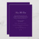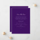 Este elegante script branco e roxo salve o cartão de data com script moderno e texto limpo para um design roxo simples e na moda que você irá adorar. Adicione texto personalizado para fornecer qualquer informação adicional necessária para seus convidados. Sinta-se à vontade para me enviar mensagens com qualquer pergunta relacionada a design - terei todo o prazer em ajudar!
